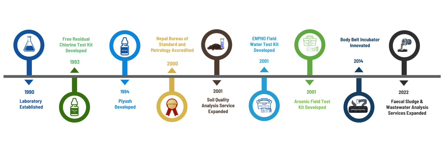 The Environment and Public Health Organization (ENPHO) operates a well-established laboratory, since its establishment in 1990, dedicated to providing reliable scientific testing and analysis of water, wastewater, faecal sludge, soil, and compost. The laboratory is accredited under the NEPLAS Criteria (based on ISO 17025) by the Nepal Bureau of Standards and Metrology, Government of Nepal. Through its laboratory services, ENPHO envisioned contributing to improving water safety, environmental health, and disease prevention across Nepal, supporting national goals and international commitments related to health, water, and sanitation.